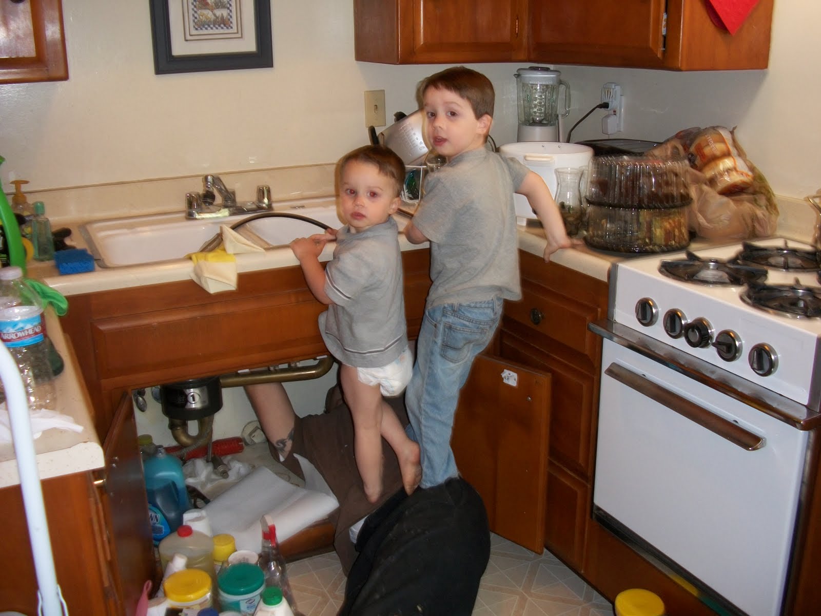 The advantage of having a husband who is a plumber is that we get new sink fixtures when other clients replace the ones they have. Cree put a faucet in our kitchen that was almost new from a family he did a side job for. They got a new one and we got the leftover almost new one! Of course we have two plumber apprentices.